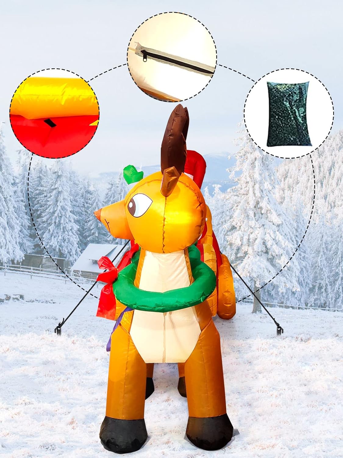 - 🎄 Won't Easy to Blow Away: This Christmas Inflatable are designed with stabilizing accessories, including heavy sandbags, ground stakes and traction ropes, which are all effective in preventing it from being blown away by the wind. Please secure it firmly before using, but please don't use it in strong wind.
