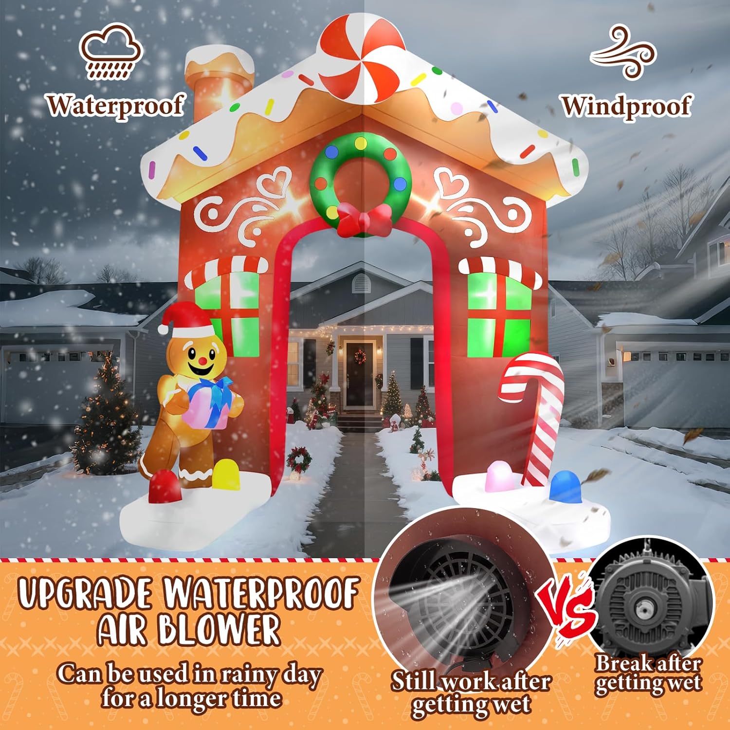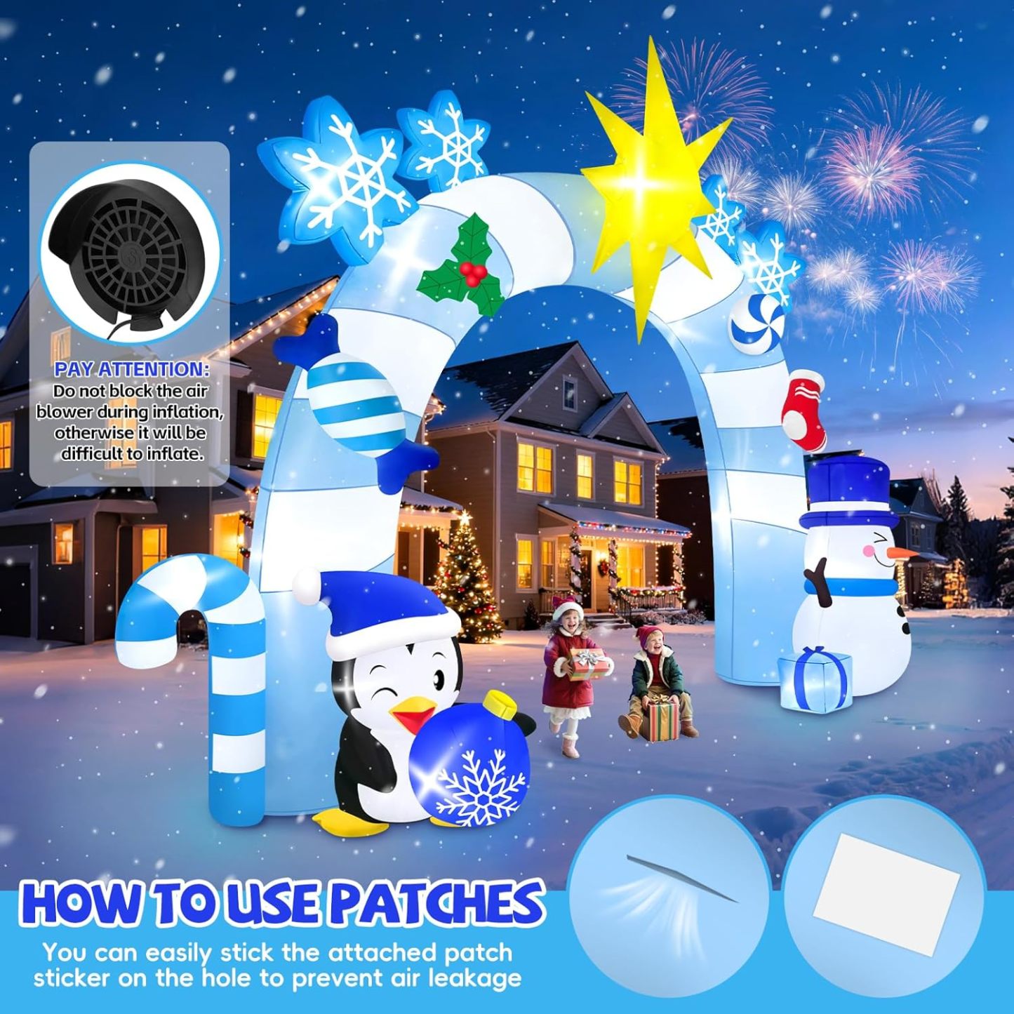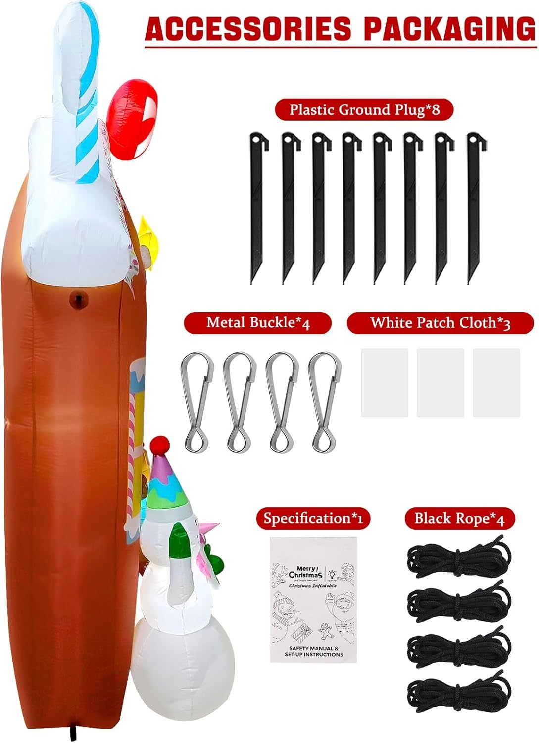 - Air blower with strong power can help this Christmas inflatable stand up to its maximum height within a short period;