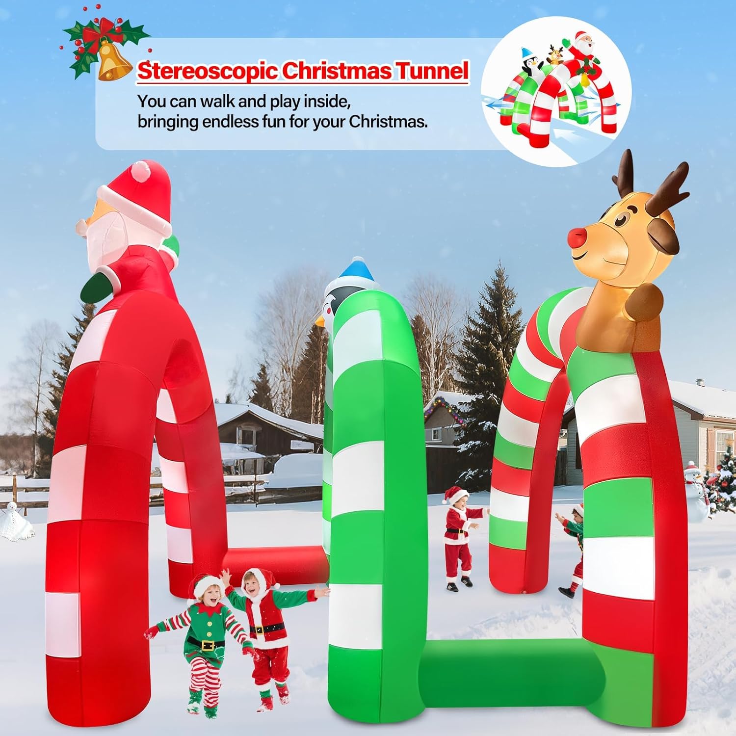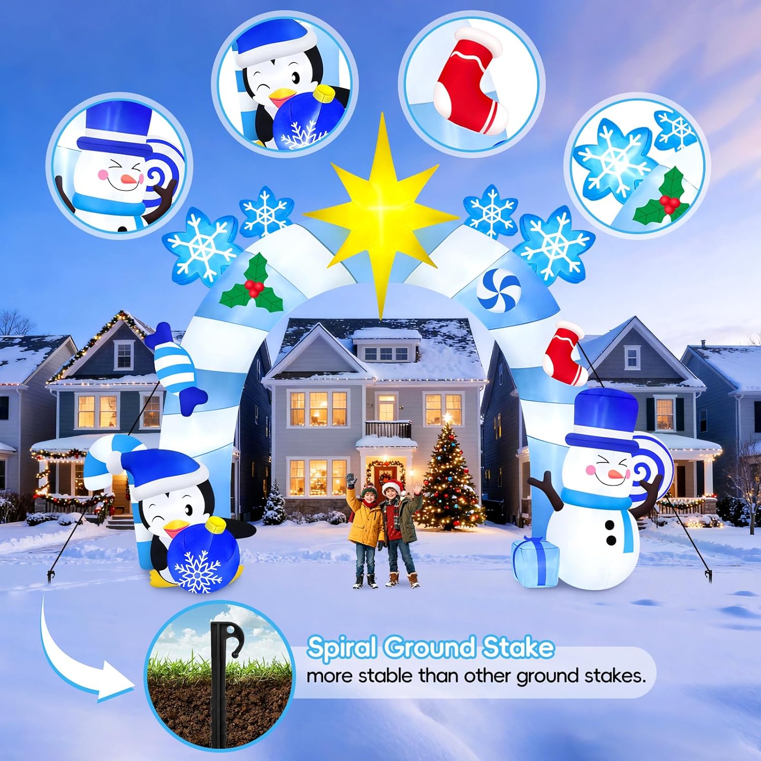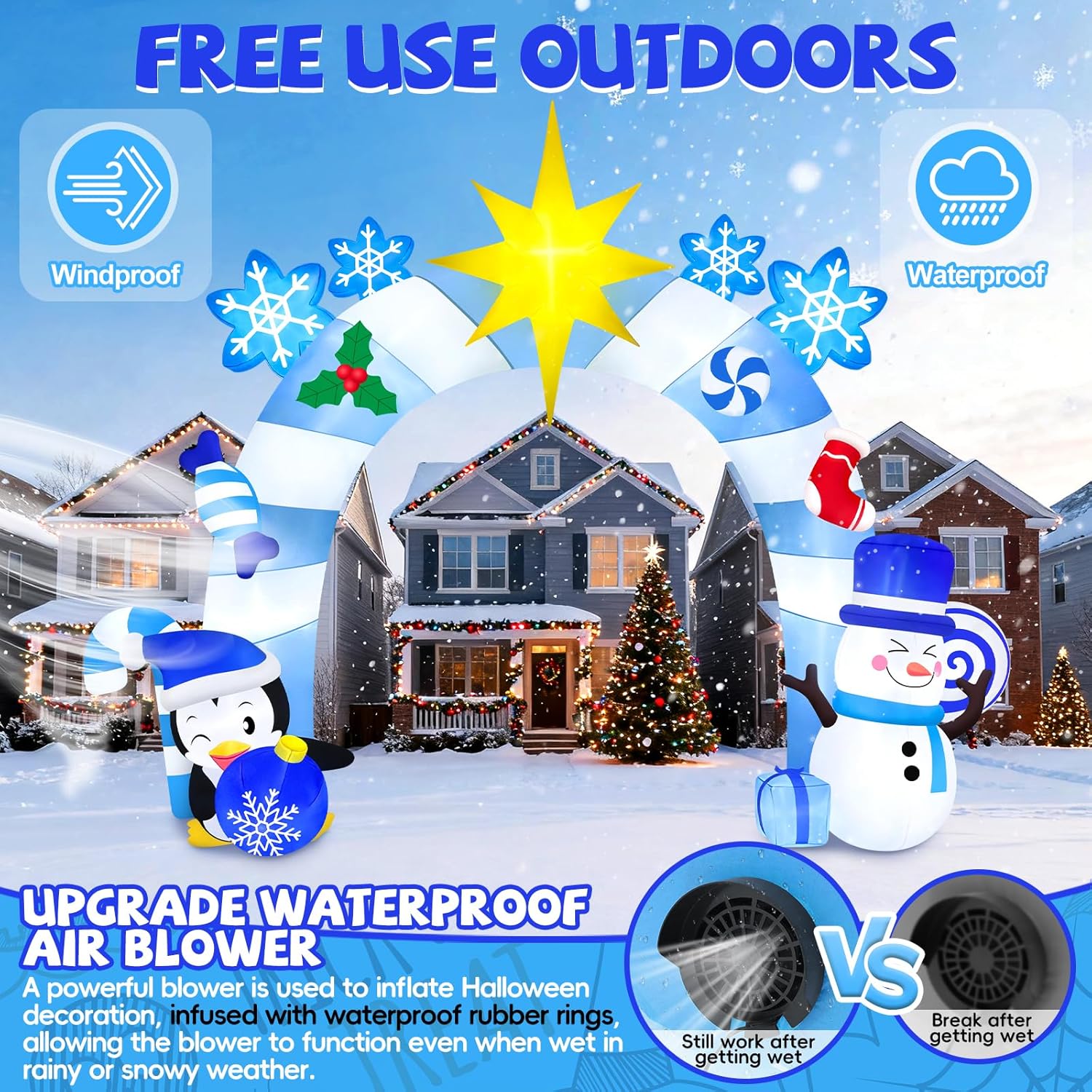 - ⛄️ Add Strong Christmas Atmosphere: The inflatable outdoor Christmas decoration is ideal for decorating the Christmas party to delight all your neighbors and guests. You can place the blow up Christmas decoration in the garden, yard, lawn, outdoors, shopping mall, square, etc. Enjoy compliments from your neighbors on your festival yard decor!