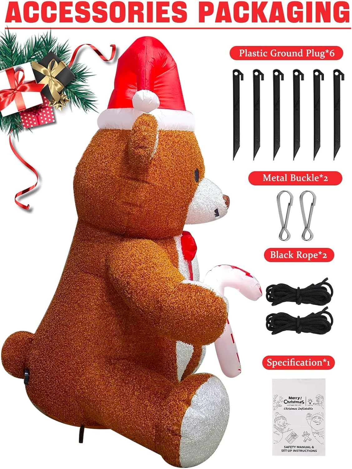 - 🦌 Unique Plush Fabric Material: Unlike regular Christmas inflatable, our Christmas bear inflatable is made of plush fabric, which can give you a fluffy and comfortable touch. Due to the special fabric, we do not recommend using it outdoors on rainy days, but it can definitely bring a unique decorative experience to your home during Christmas.
